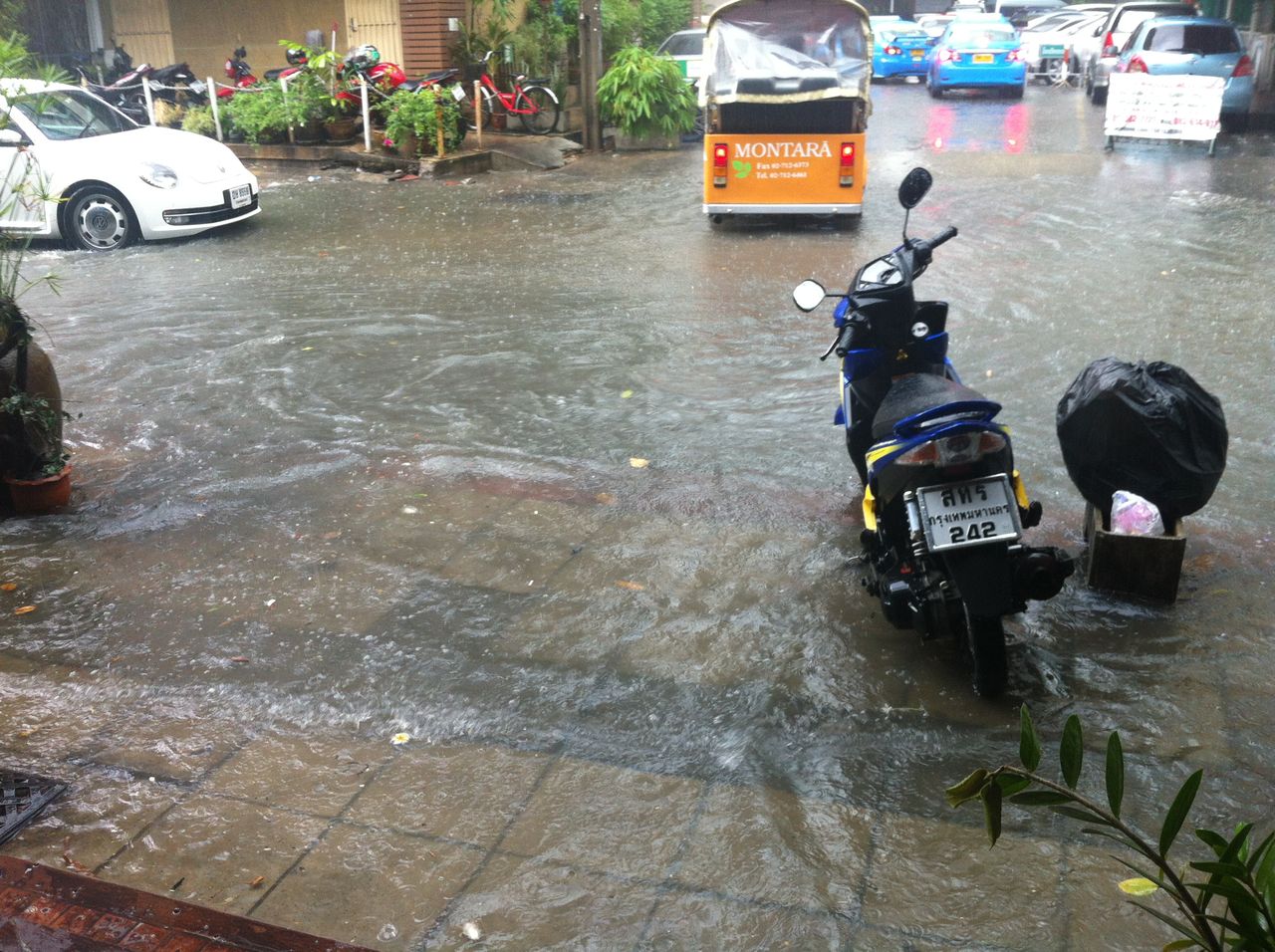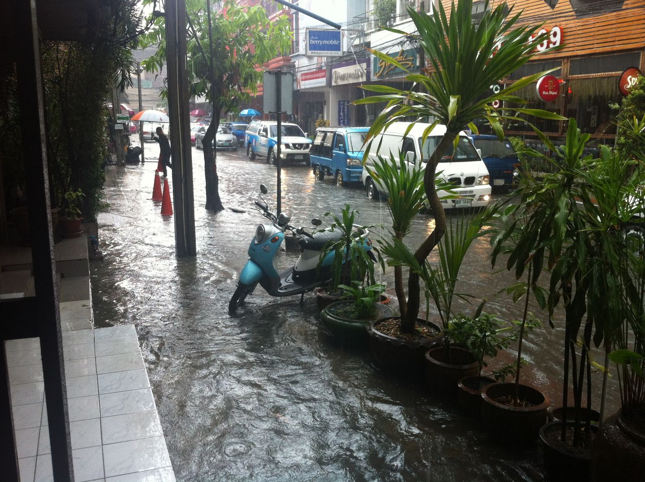 しかし、5時には、雨は完全に納まり、道路の水もはけていたので、